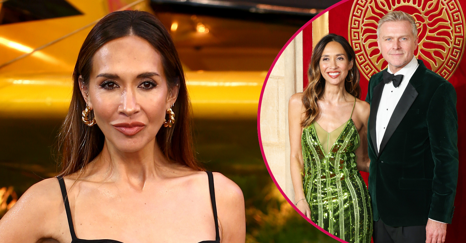 Myleene Klass cosies up to dapper fiancé Simon Motson at the Gladiator II premiere as she dazzles in a glamorous green sequin gown
